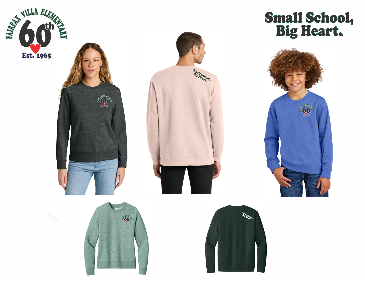 A multi color left chest logo & a stylish print on the back shoulder reminding everyone that Fairfax Villa really is "the little school with th e big heart".