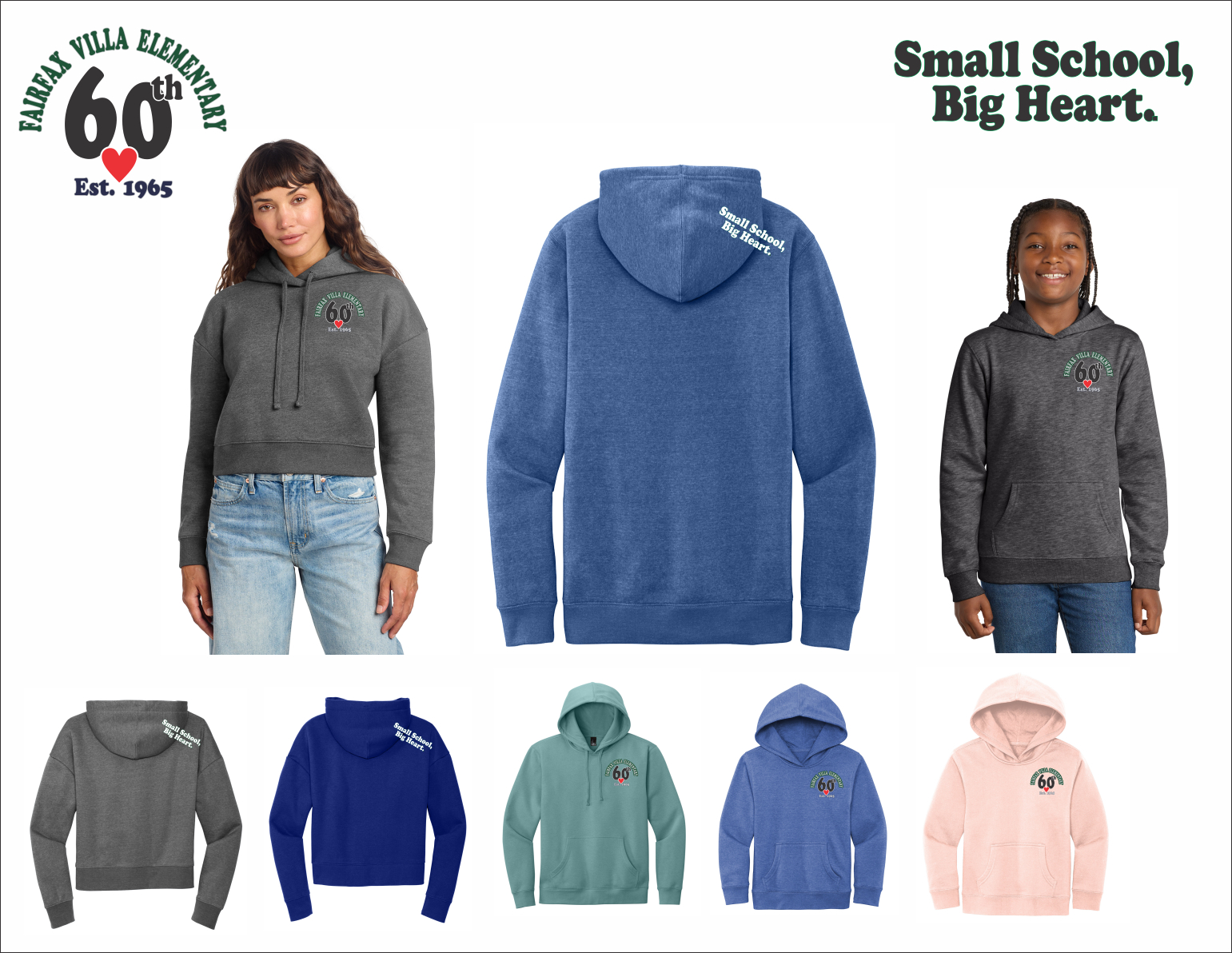 A multi color left chest logo & a stylish print on the back shoulder reminding everyone that Fairfax Villa really is "the little school with th e big heart".